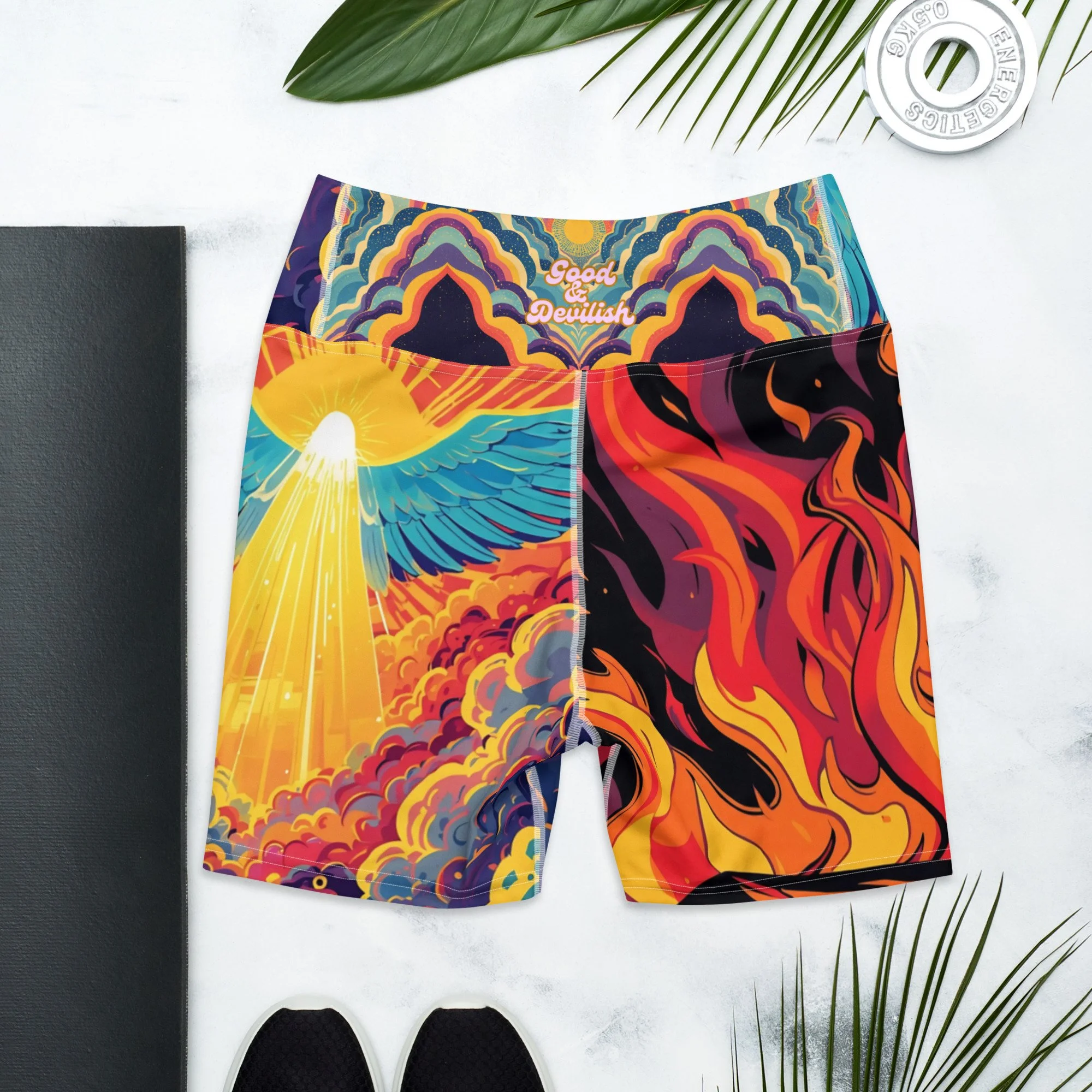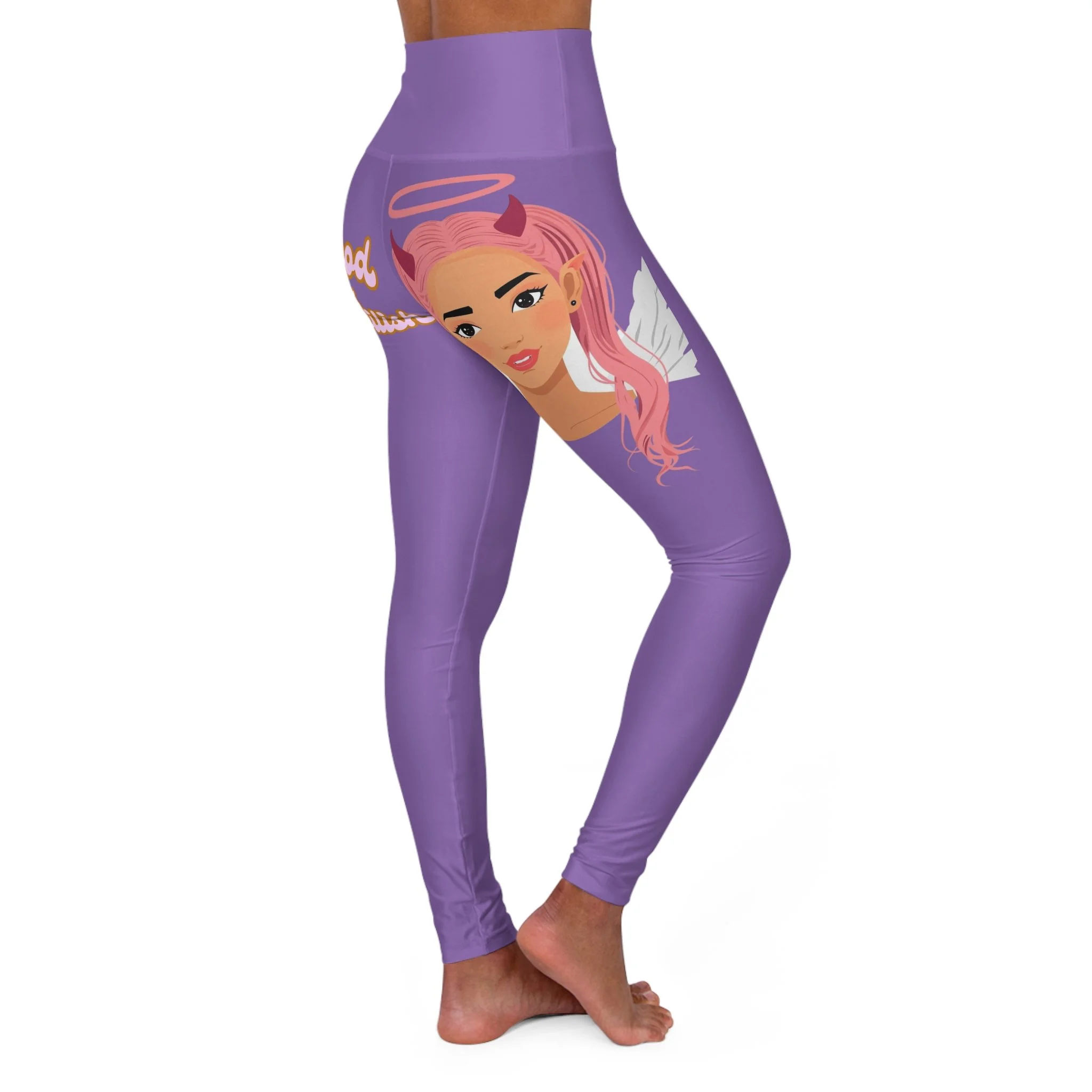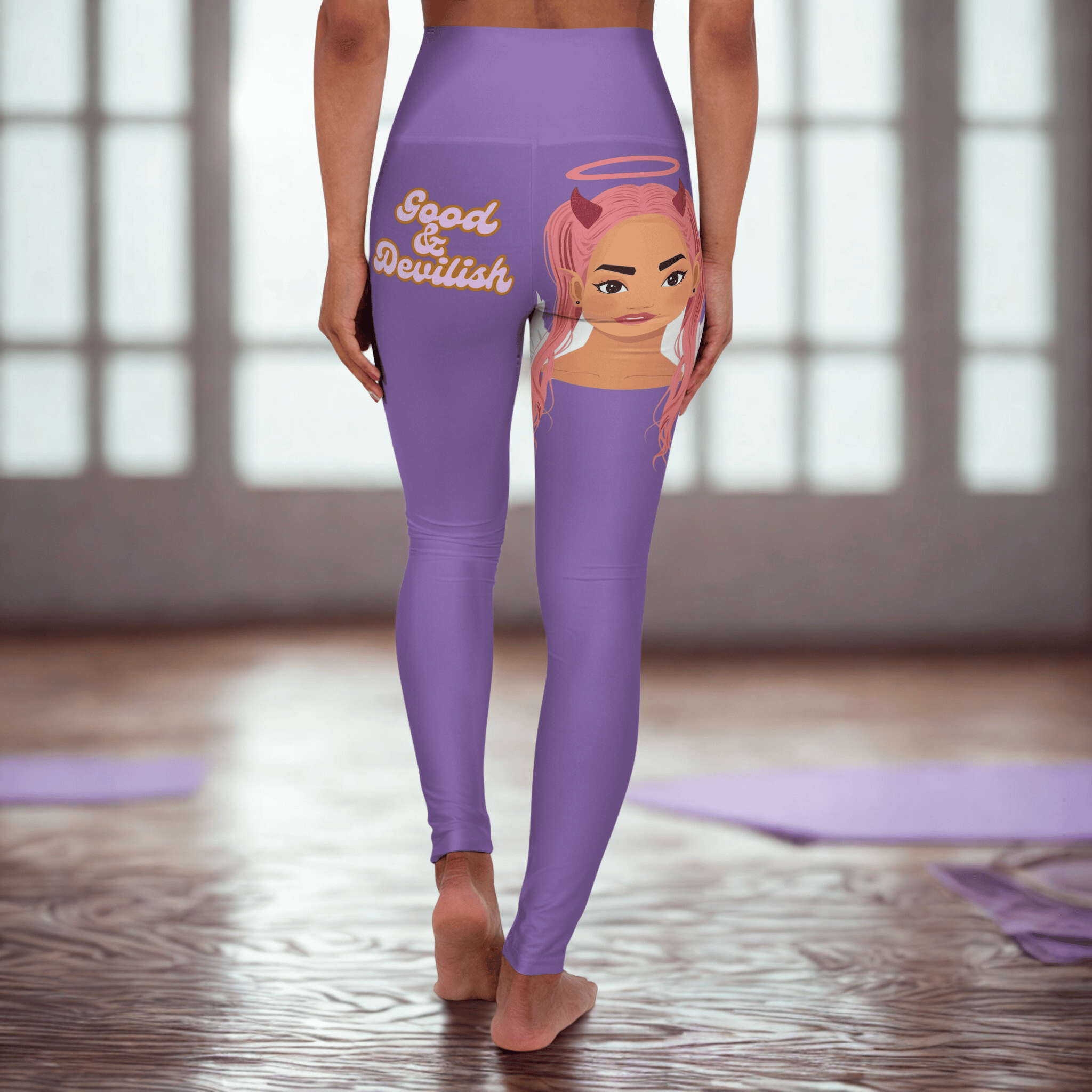 These high-waisted yoga leggings bring a playful, confident edge to movement. The cheeky “Good & Devilish” vibe reads like a wink — bold graphics spill across the legs, hugging curves and catching attention without shouting. The high-rise, double-layer waistband sits securely for sun salutations and streetwear moments alike, while the skinny fit and 4-way stretch follow every lunge and twist. Lightweight, quick-drying fabric keeps you moving, and the all-over print keeps the attitude consistent from waistband to ankle. Wear them to a sweaty class, a coffee run after practice, or whenever you want your outfit to mirror a little sass and self-assurance.