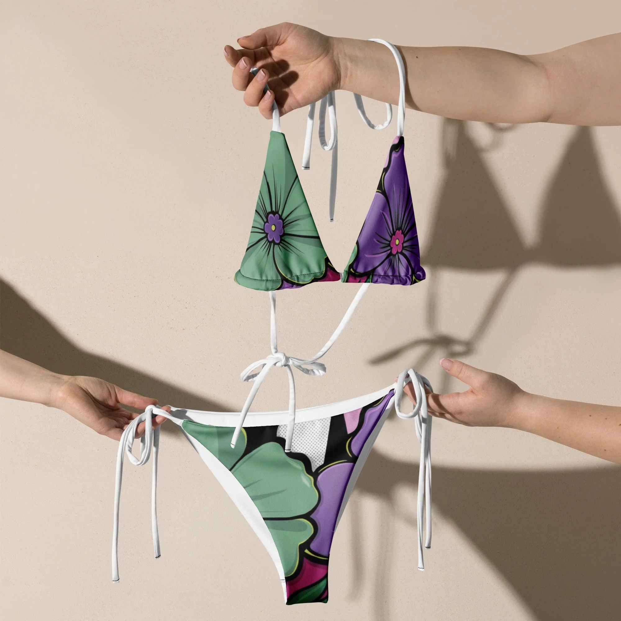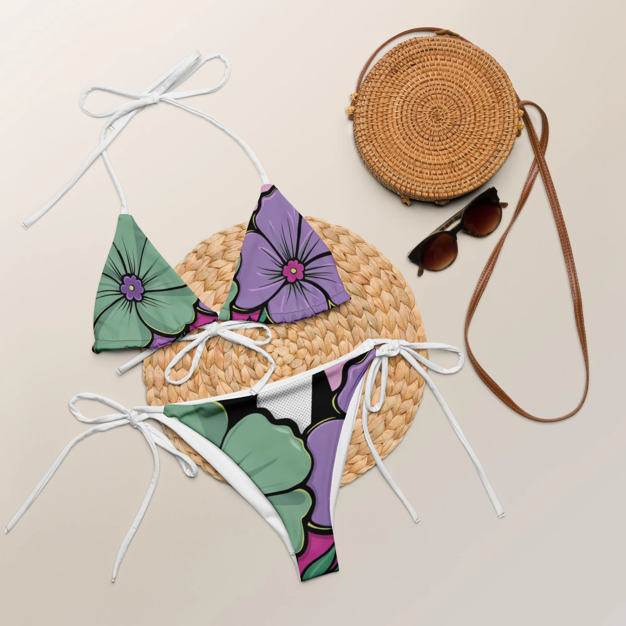 • To make your All-Over Print Recycled String Bikini last longer, thoroughly rinse it off after each use and get rid of any chlorine/salt residue.